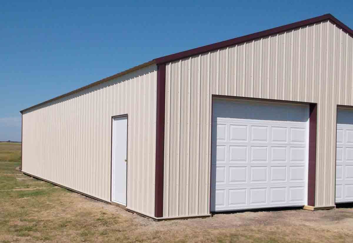 This building is a 30x48x10 pole shed, 2-10x8 garage doors and 1-3 foot service door. The colors are classic burgundy roof and trim with light stone walls.
