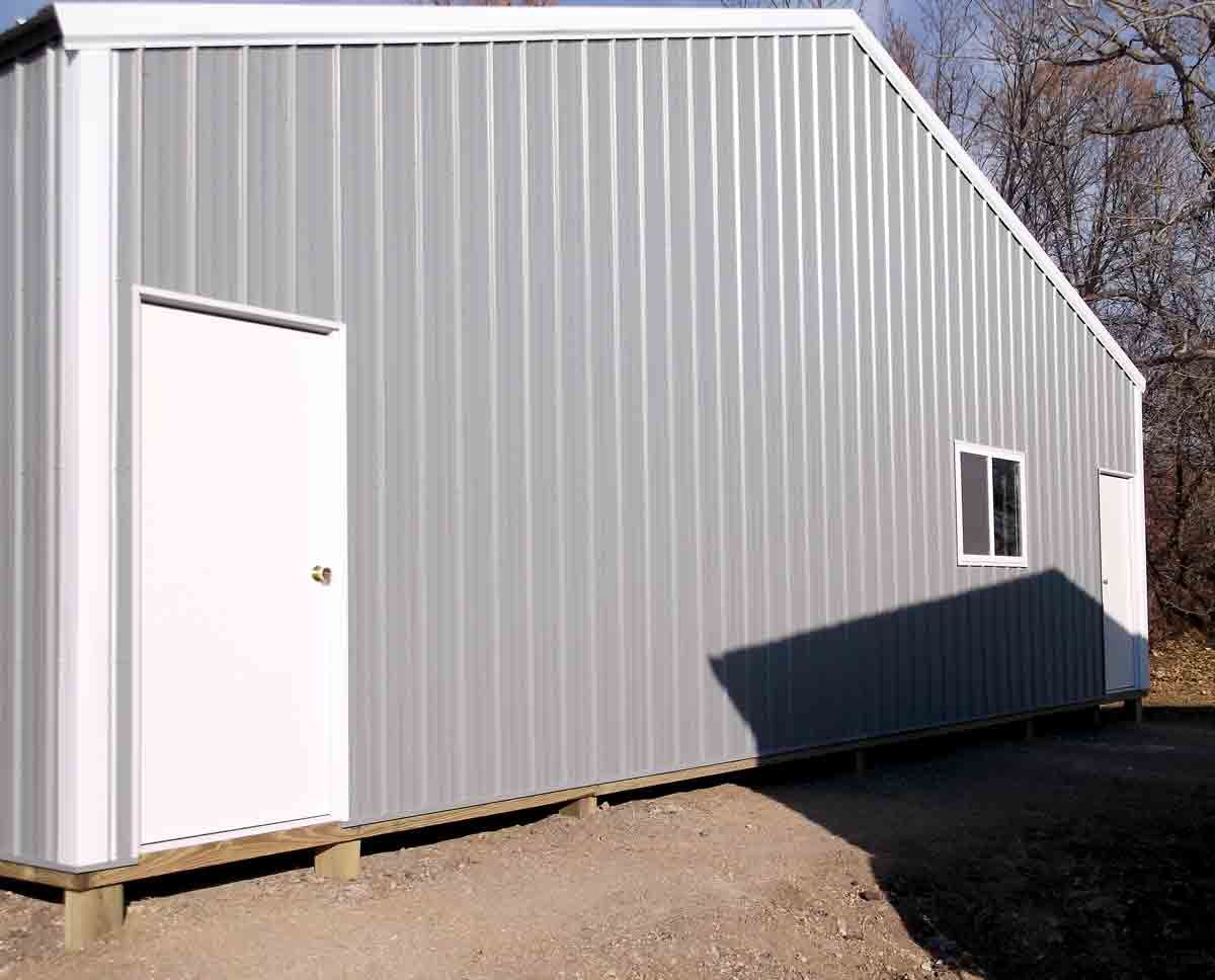 This garage is 36x48x10 pole shed, 3-10x8 garage doors and 1-3 foot service door. The colors are brite white roof and trim with light grey walls.